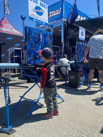 The kids zone was awesome, so many riding opportunities. There were different types of tracks for the littles to experience. One of them was a dirt pump track, the second was an obstacle course, and the third was a plastic style pump track. Each had its perks. The area was surrounded by booths that were offering kid friendly giveaways like stickers, helmets, bike lights, reflectors, and more! The boys really loved the bike rental booths. There was biky and vroom, I was looking forward to having our boys try out the prevelo bikes but they were not located near the kids zone. They did still get to try them out near their booth though which was nice. The kids zone hosted an easter egg hunt, kids race, and more! Each rider at the kids race got their own little award pin which was so awesome! They were all stoked to show dad after his race! My only recommendation for that area would be to offer seating for the parents. As our littles wanted to stay all day and there was no where to sit unless you were on your butt in the dirt. Also, having a healthy food and coffee option right there would have been ideal!
