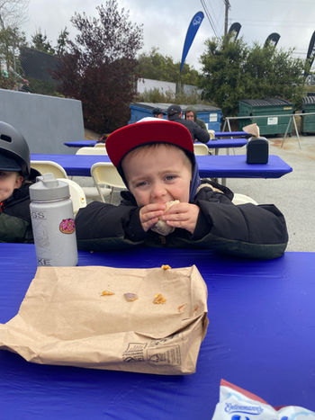 I brought a bunch of snacks for the boys in our backpack coolers and I didn't quite need all of them but it was great to have them when we were watching the races. Because it was too far from the course to just grab something real quick.